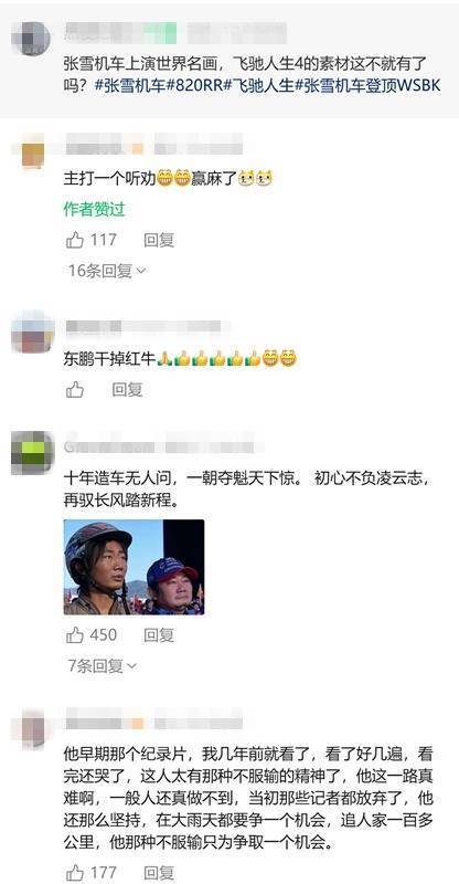 夺冠瞬息,张雪流下眼泪。视频截图 当地时间3月28日,法国车手驾驶张雪机车夺得WSBK葡萄牙站冠军,张雪在重庆不雅看直播精炼落泪,随后他在个东谈主酬酢媒体上示意:“作念一件事不是奔着成果去而是因为喜欢,可能成确实的不相似。” 网友纷纷点赞: