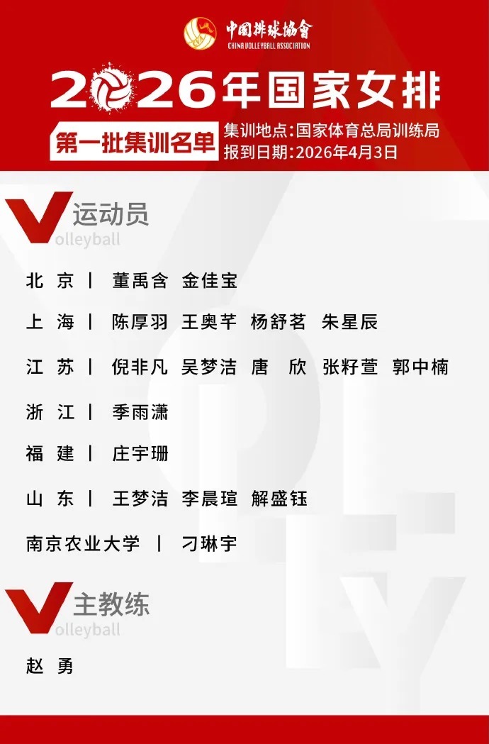 据新华社:中国女排2026年首批集训名单2日平稳出炉,球队的策画是夺取亚锦赛冠军,从而得到2028年洛杉矶奥运会的入场券。 进入首批集训的队员名单是:董禹含、金佳宝、陈厚羽、王奥芊、杨舒茗、朱星辰、倪不凡、吴梦洁、唐欣、张籽萱、郭中楠、季雨潇、庄宇珊、王梦洁、李晨瑄、解盛钰、刁琳宇。 队员们将于4月3日在国度体育总局造就局报到逼近。   ","del":0,"gnid":"978af3c07852616e5","img_data":[{"flag":"2","img":[{"desc":"","height":"460","title":"","url":"http://p0.img.360kuai.com/t11508c75c84935e665a1c359a7.jpg","width":"690"},{"desc":"","height":"1049","title":"","url":"http://p0.img.360kuai.com/t11508c75c8f3e762c8c4375f54.jpg","width":"690"}]}],"original":0,"pat":"art_src_1,fts0,sts0","powerby":"cache","pub_time":1775108883000,"pure":"","rawurl":"http://zm.news.so.com/01d55844f151a4976ab3dcec419d0ab2","redirect":0,"rptid":"bf118306c4e5c129","rss_ext":[],"s":"t","src":"极目新闻","tag":[{"clk":"ksport_1:亚锦赛","k":"亚锦赛","u":""},{"clk":"ksport_1:中国女排","k":"中国女排","u":""}],"title":"中国女排公布2026年首批集训名单,17东说念主入选,策画直指亚锦赛冠军,从而得到2028年洛杉矶奥运会入场券","type":"zmt","wapurl":"http://zm.news.so.com/01d55844f151a4976ab3dcec419d0ab2","ytag":"体育:排球","zmt":{"brand":{},"cert":"楚天齐市报官方账号","desc":"寰宇眼,中国心,不雅察者,念念想家","fans_num":0,"id":"3363258664","is_brand":"0","name":"极目新闻","new_verify":"9","pic":"https://p0.img.360kuai.com/t01de14a1e6310b539c.jpg","real":1,"textimg":"https://p9.img.360kuai.com/bl/0_3/t017c4d51e87f46986f.png","verify":"0"},"zmt_status":0}","errmsg":"","errno":0}